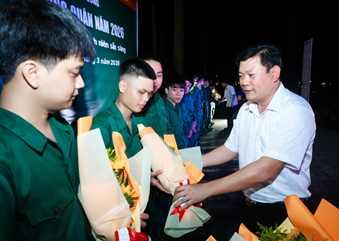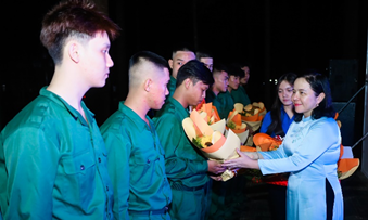Lãnh đạo phường Phước Long tặng hoa tuyên dương các thanh niên tình nguyện lên đường nhập ngũ