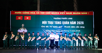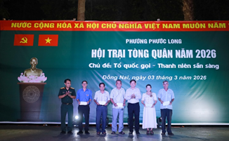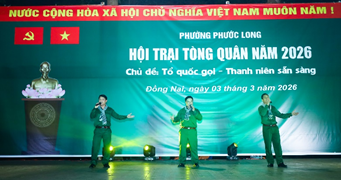 Tối 3-3-2026, Hội đồng Nghĩa vụ quân sự (NVQS) phường Phước Long tổ chức Chương trình Đêm hội tòng quân và đốt lửa trại năm 2026 nhằm động viên, khích lệ thanh niên hăng hái lên đường làm nhiệm vụ bảo vệ Tổ quốc trước ngày giao quân chính thức 4-3-2026. Chương trình diễn ra tại Quảng trường Bình Phước (khu phố Phú Xuân, phường Bình Phước, tỉnh Đồng Nai).