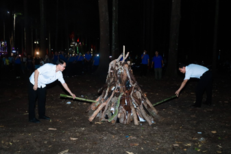 Lãnh đạo phường Phước Long châm đuốc đốt lửa trại và hình ảnh hoạt động lửa trại tại Đêm hội