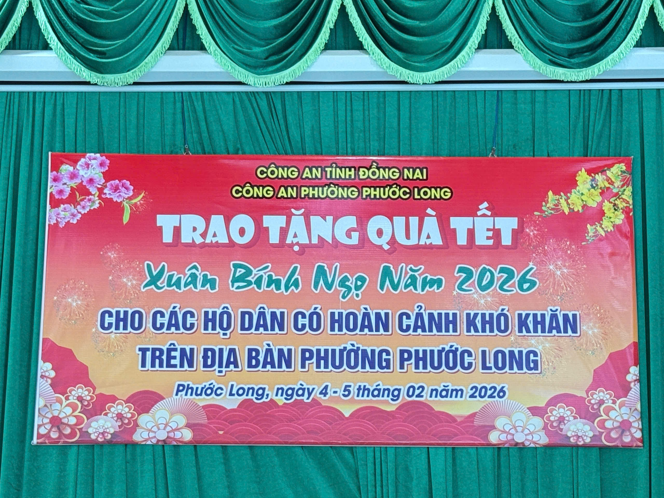 Tại chương trình, Công an phường Phước Long đã trao 60 phần quà Tết, mỗi phần trị giá 500.000 đồng, gửi đến bà con Nhân dân với mong muốn sẻ chia phần nào khó khăn, động viên tinh thần để các hộ gia đình có điều kiện vui Xuân, đón Tết Nguyên đán Bính Ngọ năm 2026 đầm ấm, nghĩa tình.