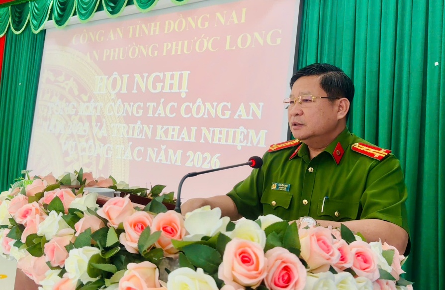 Phát biểu chỉ đạo tại hội nghị, Đại tá Lâm Văn Long Ủy viên Ban Thường vụ Đảng ủy, Phó Giám đốc Công an tỉnh Đồng Nai và ông Nguyễn Khắc Hạnh, Phó Bí thư Đảng ủy, Chủ tịch UBND phường Phước Long biểu dương, ghi nhận những kết quả mà Công an phường Phước Long đạt được trong năm 2025, đặc biệt là hiệu quả hoạt động theo mô hình tổ chức mới từ ngày 1-7-2025 đến nay. Lãnh đạo Công an tỉnh và UBND phường đề nghị Công an phường tiếp tục phát huy thành tích, triển khai đồng bộ các giải pháp nhằm kéo giảm vi phạm pháp luật và tội phạm; chú trọng xây dựng lực lượng Công an nhân dân cách mạng, chính quy, tinh nhuệ, từng bước hiện đại, đáp ứng yêu cầu nhiệm vụ trong tình hình mới; bảo đảm an ninh, an toàn cho các hoạt động, sự kiện lớn diễn ra trong năm 2026, nhất là trong những tháng đầu năm.