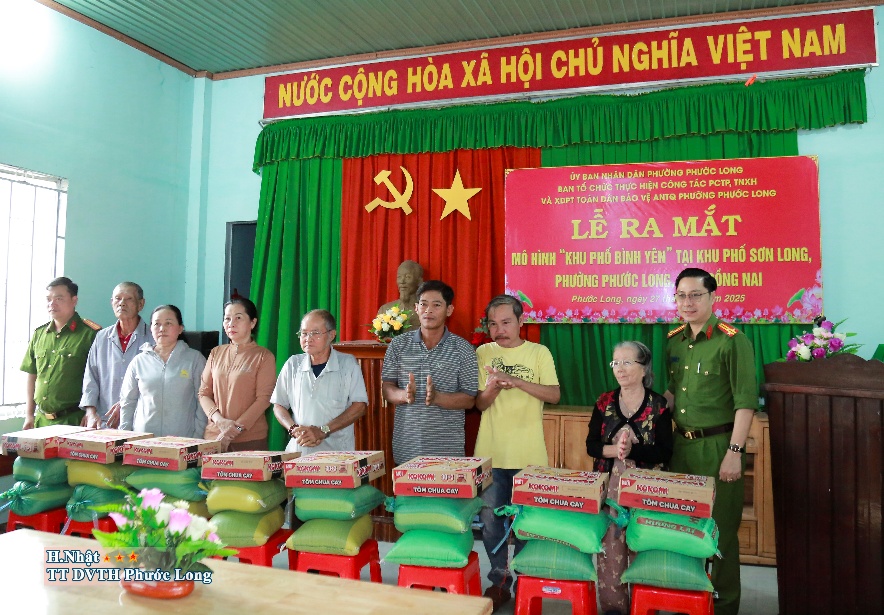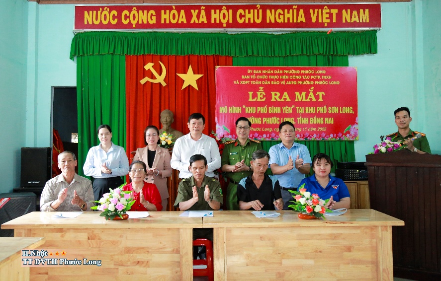 Chiều ngày 27-11-2025 tại hội trường khu phố Sơn Long, Ban tổ chức thực hiện công tác PCTP, TNXH và XDPT toàn dân bảo vệ an ninh Tổ quốc phường Phước Long tổ chức Lễ ra mắt mô hình “Khu phố bình yên” tại khu phố Sơn Long.