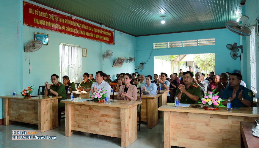 Về dự có đồng chí Nguyễn Khắc Hạnh, Phó Bí thư Đảng ủy, Chủ tịch UBND, Trưởng Ban tổ chức thực hiện công tác PCTP, TNXH và XDPT toàn dân bảo vệ an ninh Tổ quốc phường Phước Long; đồng chí Nguyễn Thị Bảo Thoa, UVBTV Đảng ủy, Phó Chủ tịch HĐND phường; Thượng tá Trương Tuấn Hùng, UVBTV Đảng ủy, Trưởng Công an phường; các đồng chí trong Ban Chỉ huy Công an phường; lực lượng cán bộ, chiến sĩ Công an, Ban CHQS phường, thành viên Tổ an ninh, trật tự cơ sở, đại diện các khu phố trên địa bàn phường, cùng bà con Nhân dân khu phố Sơn Long.