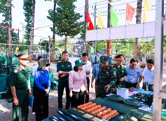 Chiều ngày 09/02, đồng chí Nguyễn Thị Hương Giang – Tỉnh ủy viên, Bí thư Đảng ủy, Bí thư Chi bộ Quân sự phường Phước Long đã đến tham quan, tìm hiểu Hội thi mô hình học cụ, vật chất huấn luyện năm 2026 tại trụ sở Ban Chỉ huy Quân sự phường Phước Long.
