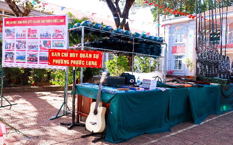 Cùng tham quan Hội thi có các đồng chí: Đoàn Ngọc Lâm – Ủy viên Ban Thường vụ Đảng ủy, Trưởng Ban Xây dựng Đảng, kiêm Giám đốc Trung tâm Chính trị phường; Đặng Xông Pha – Ủy viên Ban Thường vụ Đảng ủy, Phó Chủ tịch UBND phường; lãnh đạo các cơ quan, đơn vị, ban ngành, đoàn thể phường Phước Long và cán bộ, chiến sĩ Ban CHQS phường.