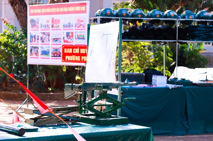 Hình ảnh mô hình học cụ, vật chất huấn luyện năm 2026 của Ban CHQS phường Phước Long tham dự Hội thi năm 2026