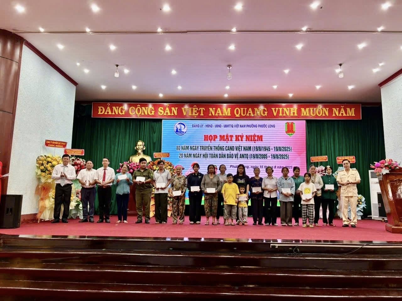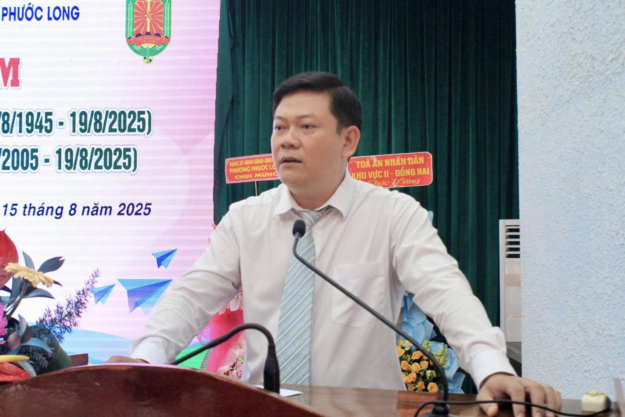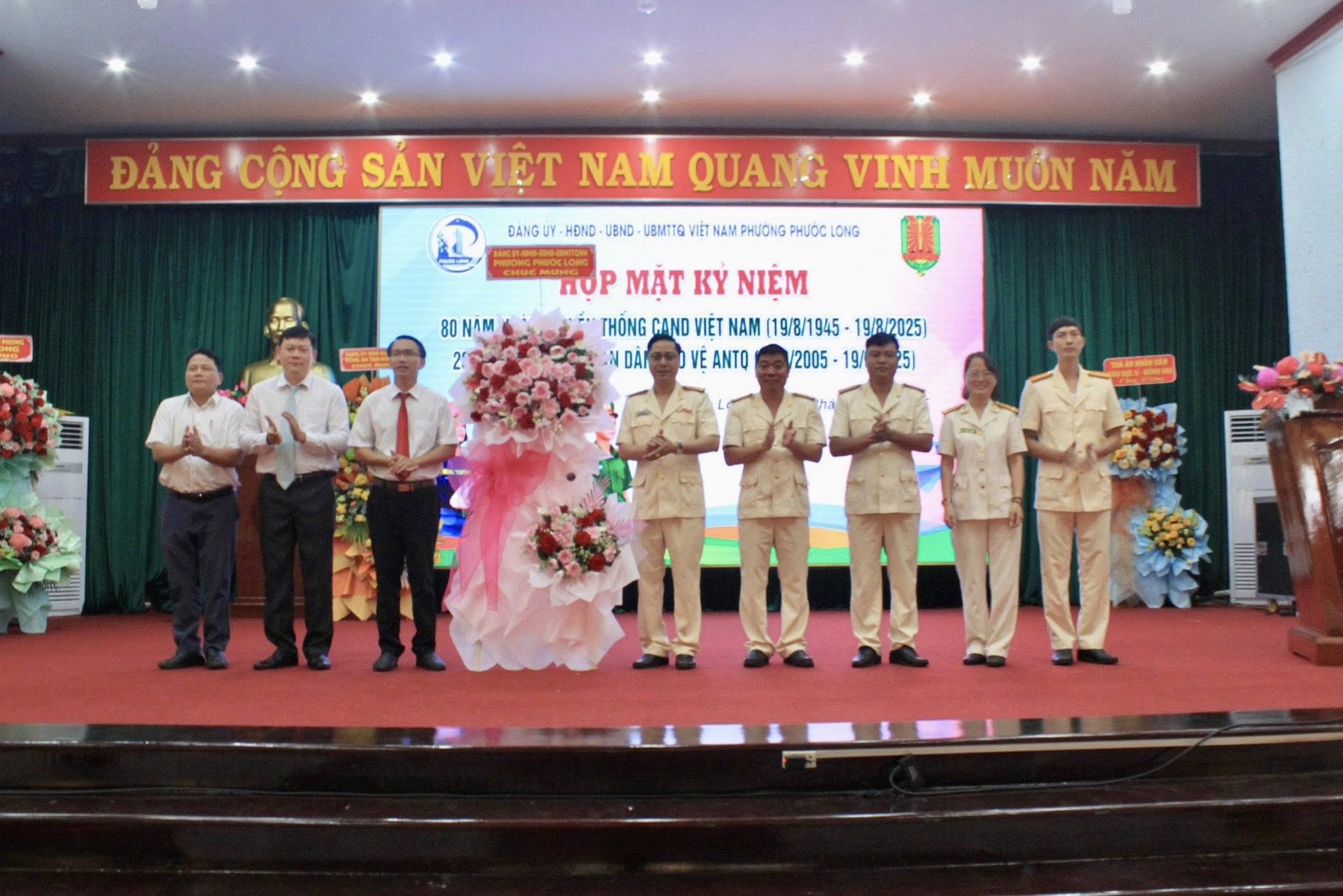 Sáng thứ Sáu, ngày 15 tháng 8 năm 2025, tại Hội trường Ủy ban nhân dân phường Phước Long, tỉnh Đồng Nai, UBND phường Phước Long đã long trọng tổ chức Lễ kỷ niệm 80 năm Ngày truyền thống Công an nhân dân Việt Nam (19/8/1945 – 19/8/2025) và 20 năm Ngày hội Toàn dân bảo vệ an ninh Tổ quốc (19/8/2005 – 19/8/2025).