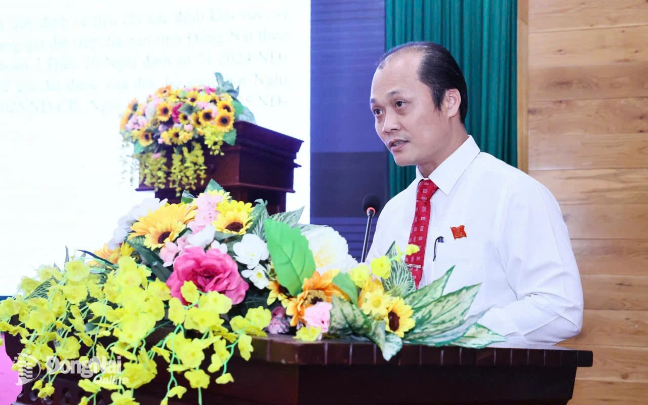 Ủy viên Ban Thường vụ Tỉnh ủy, Giám đốc Sở Nông nghiệp và Môi trường tỉnh Đồng Nai Nguyễn Tuấn Anh trình bày dự thảo nghị quyết tại kỳ họp