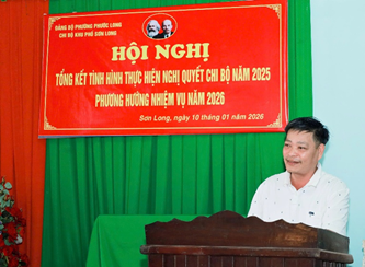 Chiều ngày 10-1, Chi bộ Khu phố Sơn Long, phường Phước Long tổ chức Hội nghị tổng kết tình hình thực hiện Nghị quyết Chi bộ năm 2025 và triển khai phương hướng, nhiệm vụ năm 2026.