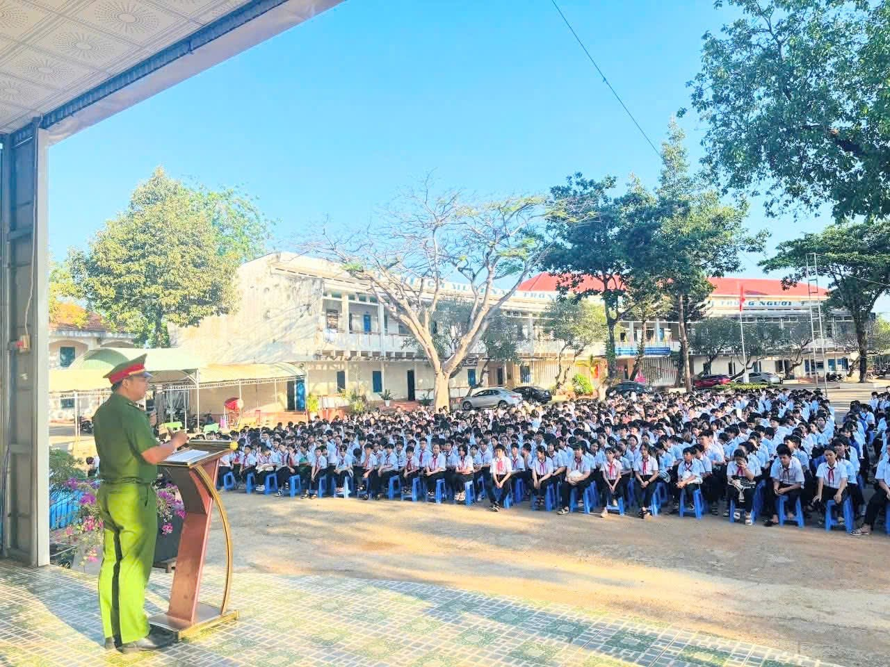 Công an phường Phước Long tuyên truyền phòng, chống ma túy và bạo lực học đường tại Trường THCS Thác Mơ