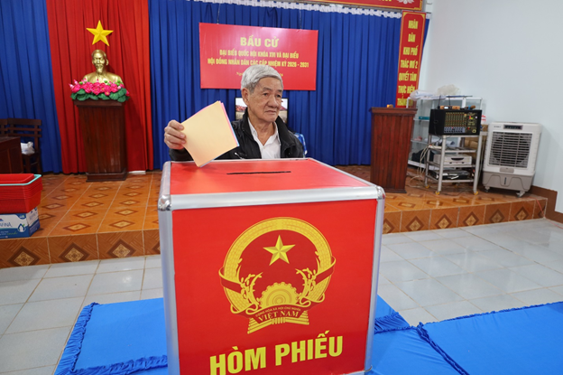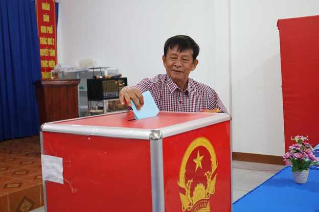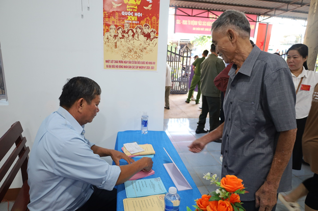 Đúng 7 giờ sáng, cuộc bầu cử chính thức được khai mạc. Những cử tri cao tuổi được trân trọng mời bỏ phiếu đầu tiên, sau đó các cử tri lần lượt thực hiện quyền bầu cử của mình trong trật tự, nghiêm túc và đúng quy định.
