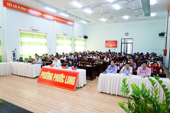 Tại điểm cầu Hội trường Đảng ủy phường Phước Long, tham dự hội nghị có các đồng chí: Nguyễn Thị Hương Giang – Tỉnh ủy viên, Bí thư Đảng ủy phường; Nguyễn Khắc Hạnh – Phó Bí thư Đảng ủy, Chủ tịch UBND phường; cùng các đồng chí trong Ban Thường vụ, Ban Chấp hành Đảng bộ phường, Ủy ban Kiểm tra Đảng ủy; cán bộ, đảng viên thuộc các chi, đảng bộ trực thuộc; lãnh đạo các khu phố trên địa bàn.
