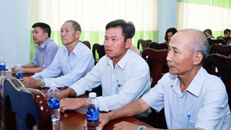 Cán bộ, đảng viên phường Phước Long tham dự hội nghị toàn quốc tại điểm cầu trực tuyến hội trường Đảng ủy phường