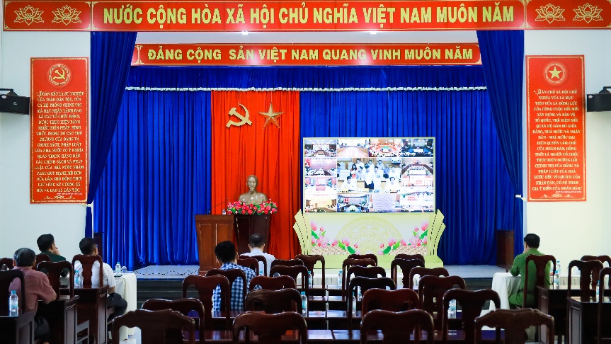 Tham dự trực tuyến điểm cầu hội trường HĐND&UBND phường Phước Long có đồng chí Đặng Xông Pha - Ủy viên Ban Thường vụ Đảng ủy, Phó Chủ tịch UBND phường; Các thành viên Ban chỉ huy Phòng thủ dân sự phường Phước Long.