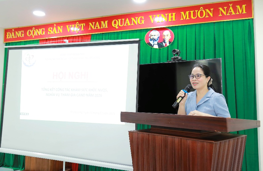 Phát biểu chỉ đạo tại hội nghị, bà Đỗ Thị Nguyên, Giám đốc Sở Y tế tỉnh, Ủy viên Hội đồng NVQS tỉnh Đồng Nai đánh giá cao kết quả công tác khám sức khỏe NVQS – CAND năm 2026, ghi nhận sự phối hợp đồng bộ, hiệu quả giữa các đơn vị liên quan trong bối cảnh có nhiều điểm mới, thay đổi so với các năm trước khi không còn cấp huyện. Bà đề nghị thời gian tới, Hội đồng NVQS phường Phước Long và phường Phước Bình tiếp tục thực hiện tốt các bước tiếp theo trong công tác tuyển quân, bảo đảm đúng quy định của pháp luật.