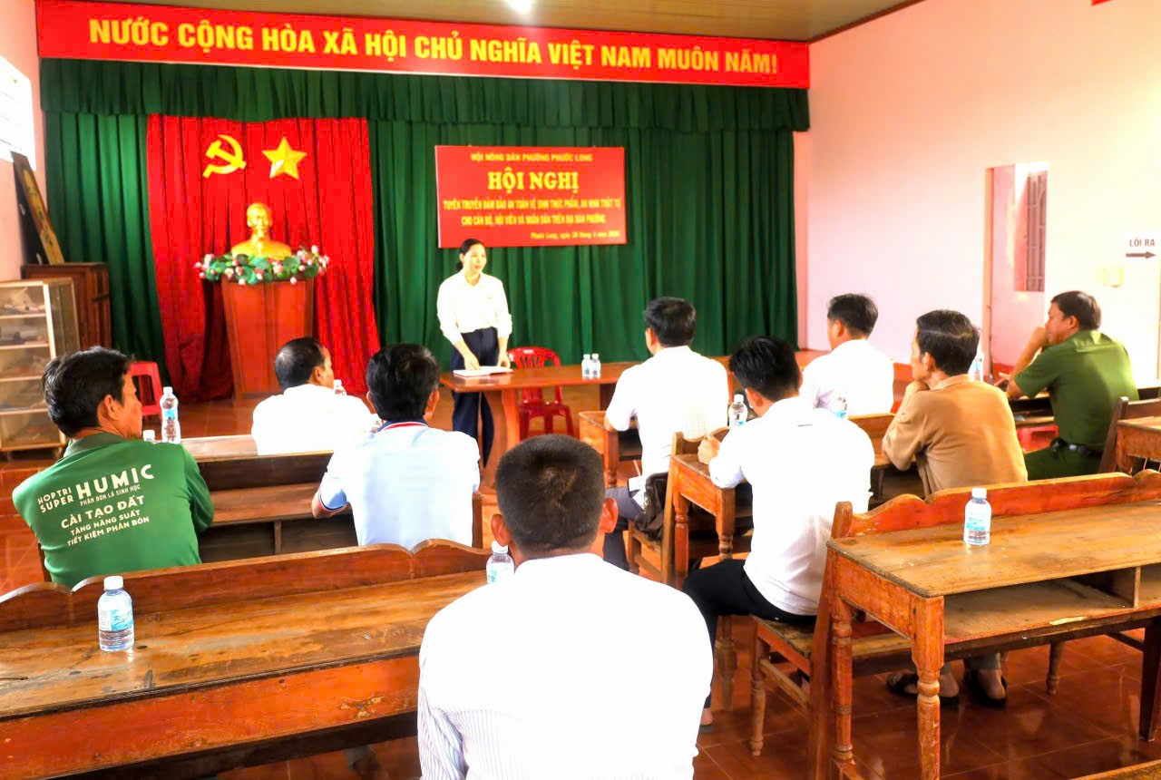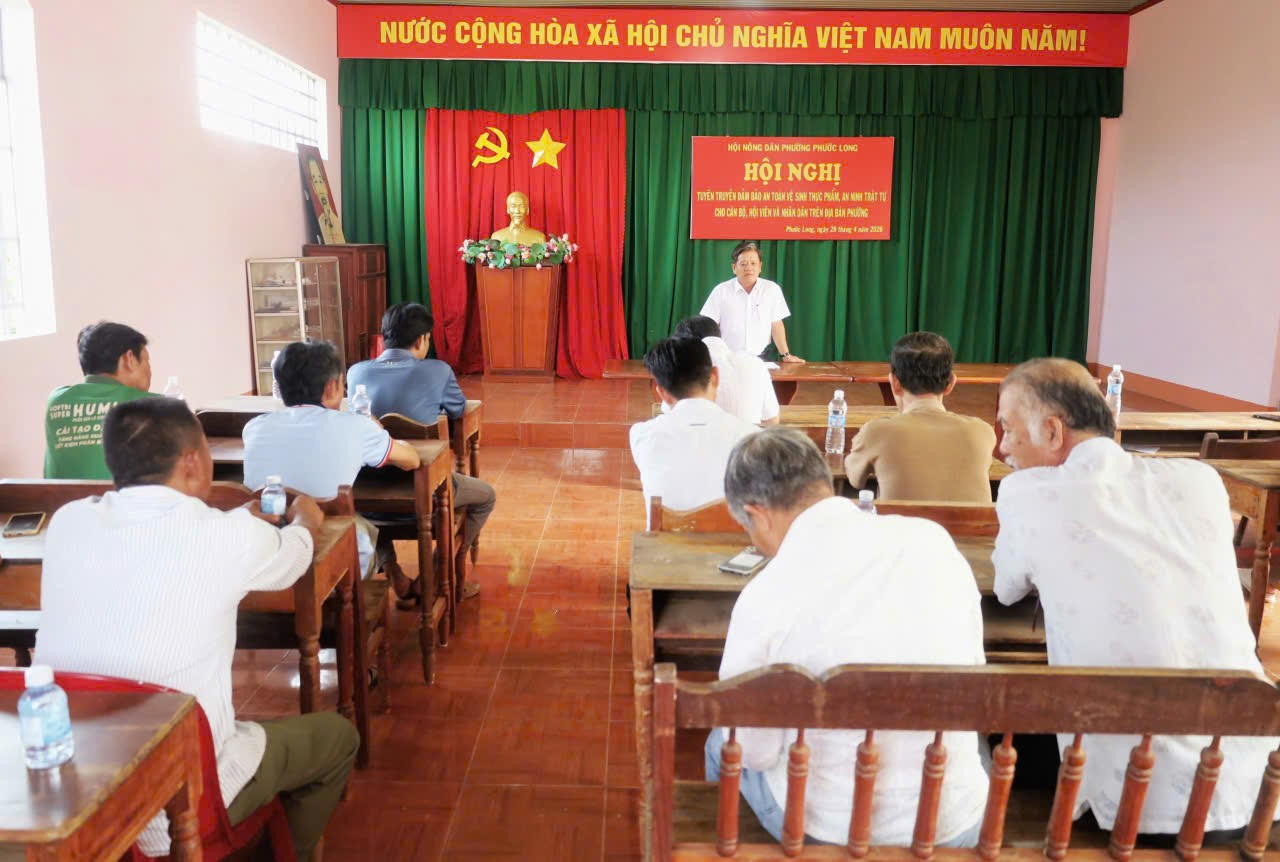 Sáng ngày 28/4, tại Hội trường khu phố Bàu Nghé, Hội Nông dân phường Phước Long tổ chức hội nghị tuyên truyền đảm bảo an ninh trật tự và an toàn vệ sinh thực phẩm cho cán bộ, hội viên nông dân trên địa bàn các khu phố Bàu Nghé, Hưng Lập, Phước Lộc, Phước Yên, Phước Thiện, Phước Quả. Tham dự có đồng chí Dương Văn Vịnh, Đảng ủy viên, Phó Chủ tịch Thường trực Ủy ban MTTQ Việt Nam phường, Chủ tịch Hội Nông dân phường cùng đông đảo hội viên nông dân.