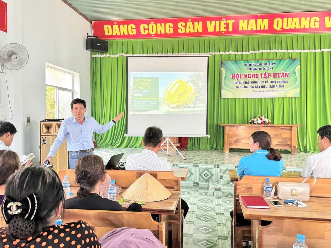 Nhằm nâng cao kiến thức, kỹ năng sản xuất nông nghiệp cho hội viên, đồng thời thúc đẩy việc ứng dụng tiến bộ khoa học kỹ thuật vào thực tiễn canh tác, chiều ngày 02/4/2026, Hội Nông dân phường Phước Long phối hợp với Hội Liên hiệp Phụ nữ phường tổ chức Hội nghị tập huấn chuyển giao khoa học kỹ thuật trồng, chăm sóc cây điều và sầu riêng.