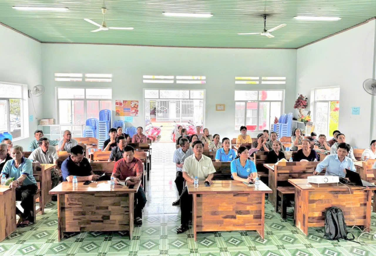 Báo cáo viên tại hội nghị là ông Mai Văn Hè – Phó Giám đốc Trung tâm Nông nghiệp khu vực 17. Với kinh nghiệm thực tiễn phong phú và chuyên môn sâu, báo cáo viên đã truyền đạt nhiều nội dung thiết thực, sát với nhu cầu sản xuất của địa phương. Nội dung tập huấn tập trung vào quy trình cải tạo và chuẩn bị đất; kỹ thuật lựa chọn giống phù hợp với điều kiện thổ nhưỡng; hướng dẫn trồng, chăm sóc cây điều và sầu riêng theo từng giai đoạn sinh trưởng; kỹ thuật bón phân cân đối, tưới nước hợp lý; đồng thời cung cấp các biện pháp nhận diện sớm và phòng, trừ hiệu quả các loại sâu bệnh hại thường gặp.