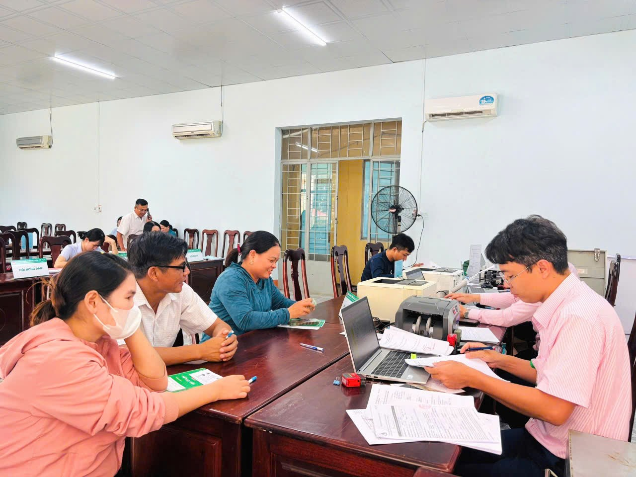 Một số hình ảnh Phòng giao dịch NHCSXH Phước Long thực hiện phiên giao dịch cố định hàng tháng tại Điểm giao dịch trên địa bàn quản lý