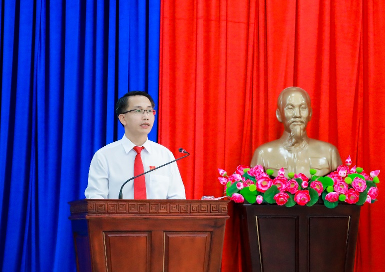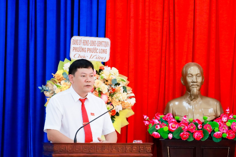 Đồng chí Nguyễn Khắc Hạnh - Phó Bí thư Đảng ủy, Chủ tịch UBND phường Phước Long khóa II phát biểu nhận nhiệm vụ