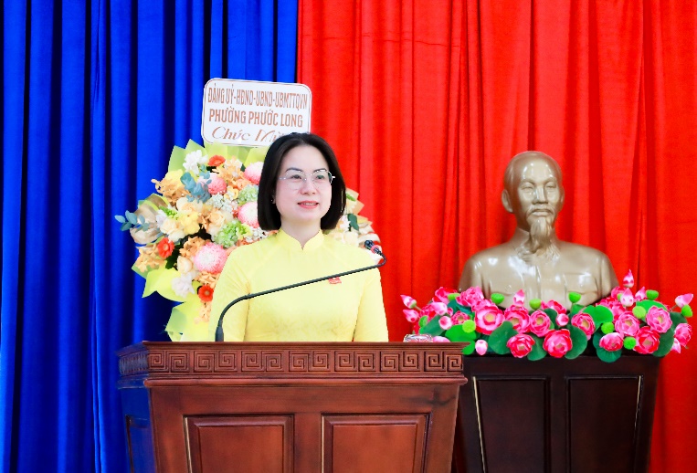Đồng chí Nguyễn Thị Hương Giang - Tỉnh ủy viên, Bí thư Đảng ủy phường Phước Long dự và phát biểu chỉ đạo tại kỳ họp