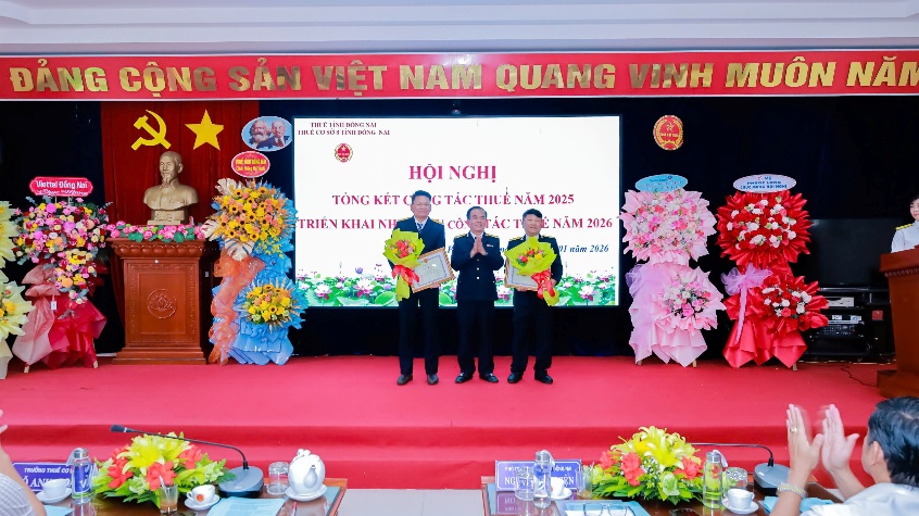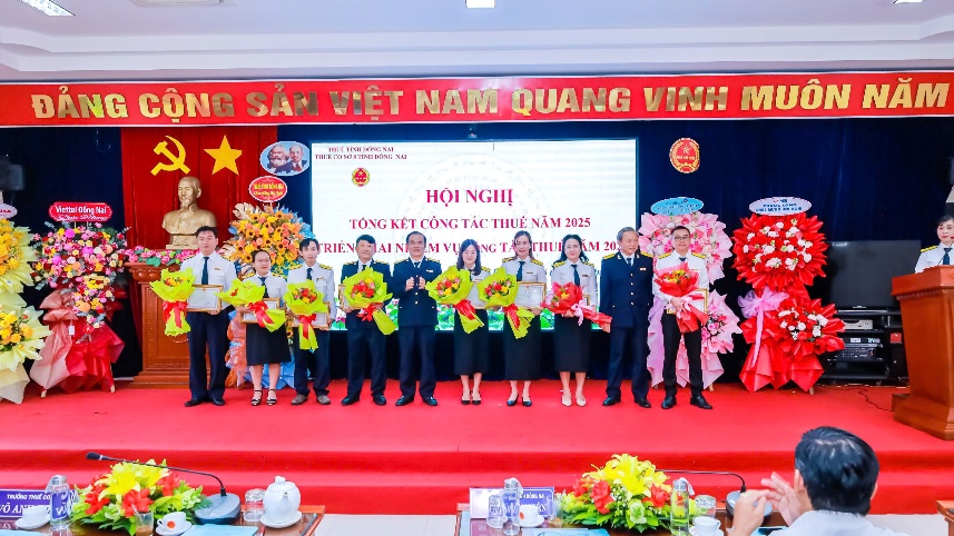 Lãnh đạo Thuế tỉnh Đồng Nai và Thuế cơ sở 8 trao khen thưởng cho tập thể, cá nhân có thành tích xuất sắc năm 2025