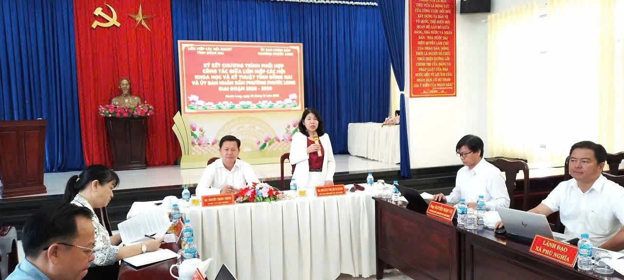 Các đại biểu chứng kiến ký kết hợp tác giữa Liên hiệp các hội Khoa học và kỹ thuật tỉnh và UBND phường Phước Long