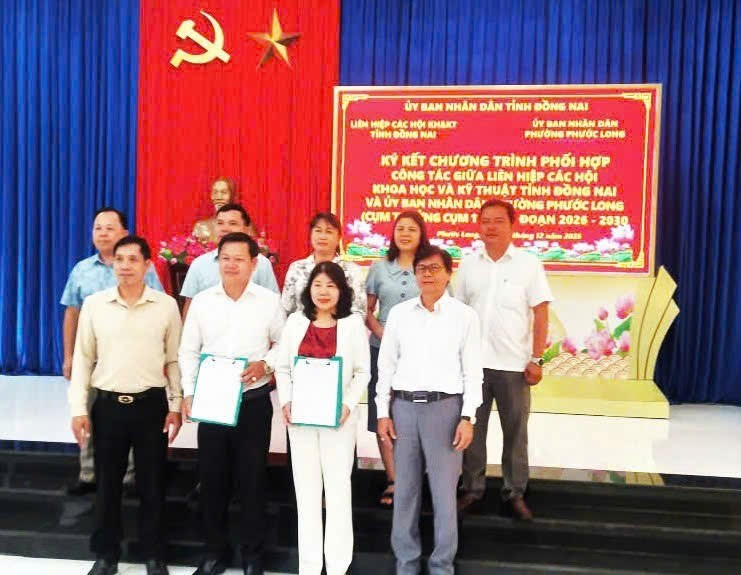 Sáng ngày 23/12, tại Hội trường HĐND – UBND phường Phước Long, Liên hiệp các hội Khoa học và Kỹ thuật tỉnh và UBND phường Phước Long đã tổ chức Lễ ký kết Chương trình phối hợp giai đoạn 2026 – 2030.