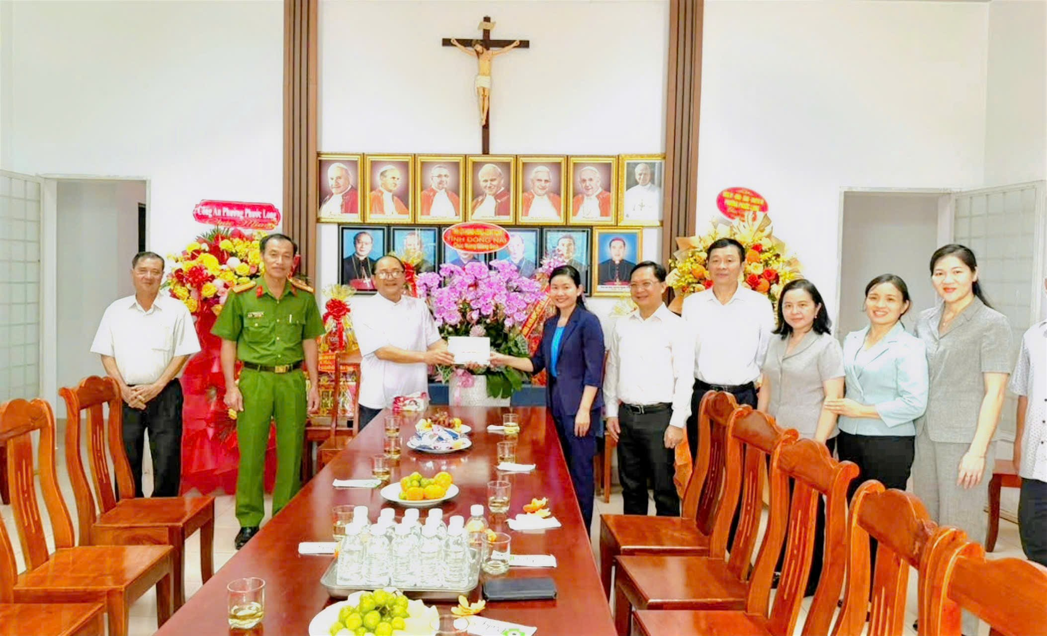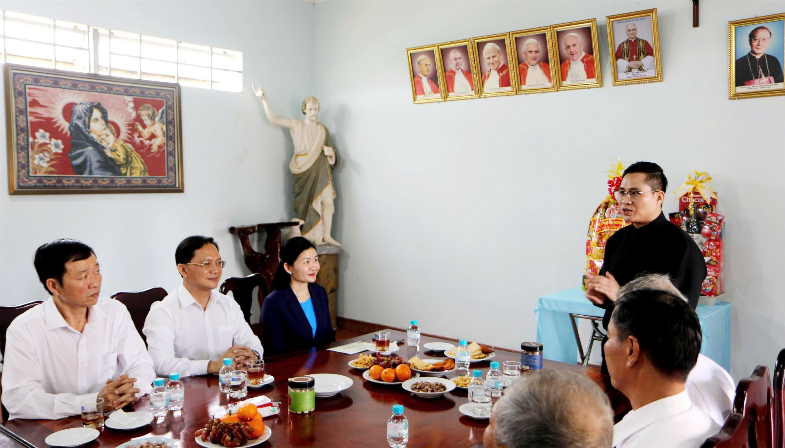 Đ/c Tôn Ngọc Hạnh, Ủy viên dự khuyết Trung ương Đảng, Phó Bí thư Thường trực Tỉnh ủy, Chủ tịch HĐND tỉnh Đồng Nai cùng các thành viên trong đoàn trao quà chúc mừng Giáng sinh đến Linh mục Hoàng Minh Tâm, Quản hạt Phước Long