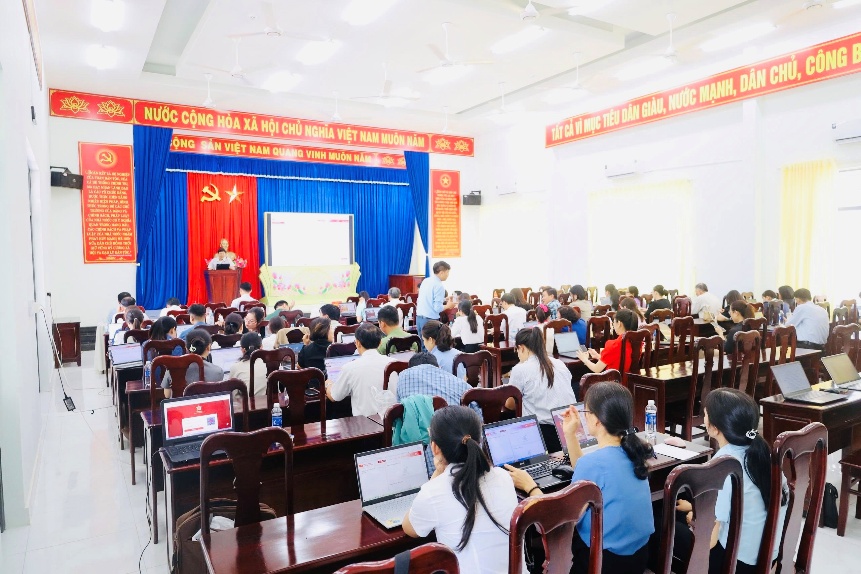Hội nghị diễn ra trong không khí nghiêm túc, sôi nổi với nhiều nội dung thực hành trực tiếp và trao đổi, thảo luận nhằm tháo gỡ những khó khăn, vướng mắc trong quá trình triển khai thực tế tại cơ sở.