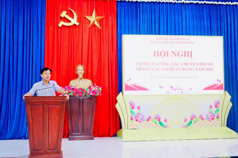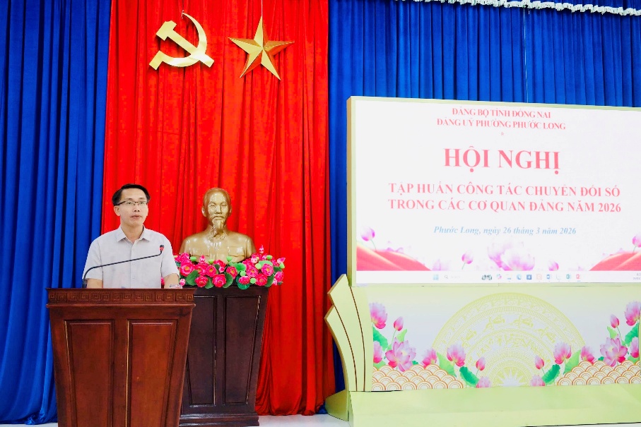 Sáng ngày 26/03/2026, Đảng ủy phường Phước Long đã tổ chức Hội nghị tập huấn về chuyển đổi số trong công tác Đảng, nhằm nâng cao năng lực ứng dụng công nghệ thông tin cho đội ngũ cán bộ, đảng viên, đáp ứng yêu cầu đổi mới phương thức lãnh đạo trong giai đoạn hiện nay.