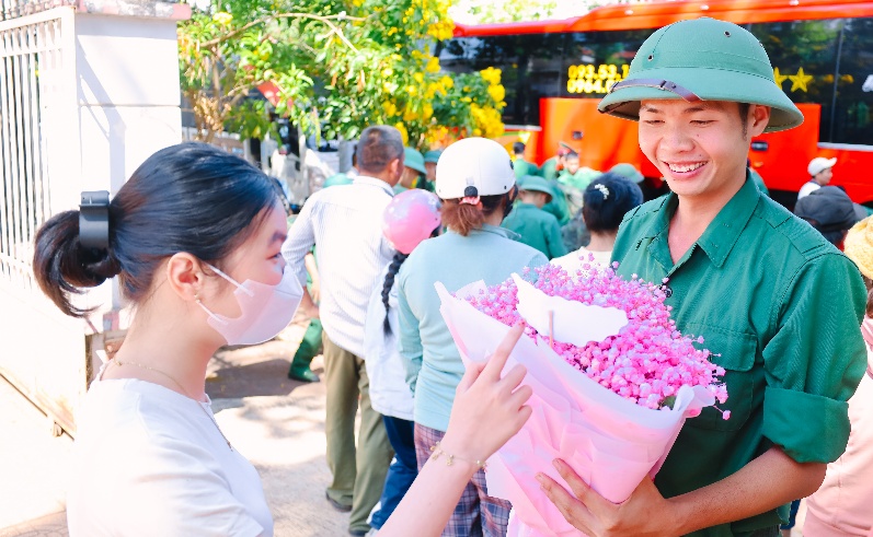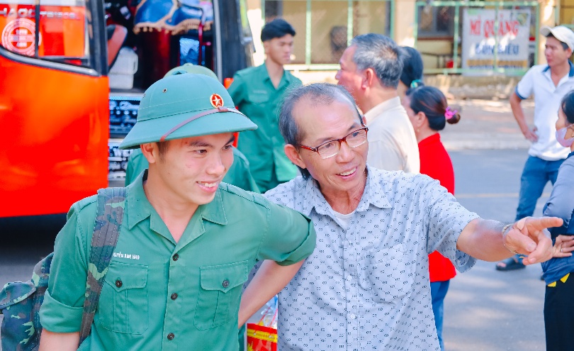 Gia đình, người thân và bạn bè đến đón, chúc mừng quân nhân hoàn thành nghĩa vụ quân sự tại ngũ trở về xây dựng quê hương