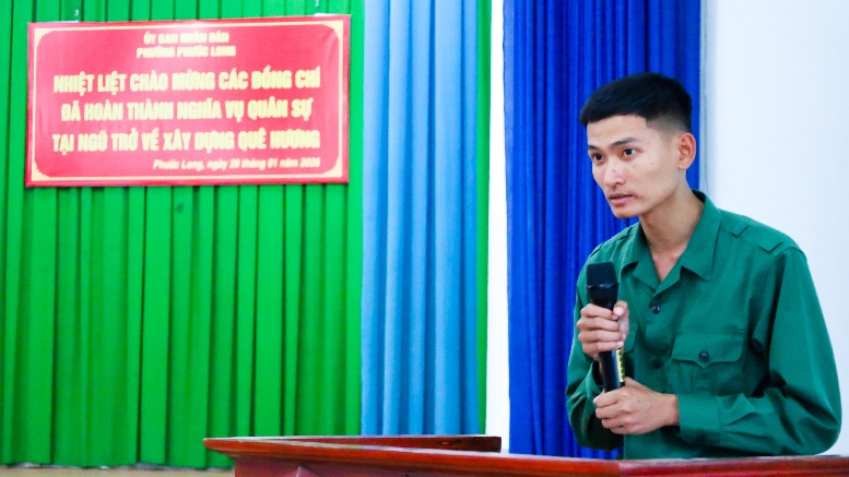 Quân nhân Phạm Công Văn, đại diện cho 40 quân nhân trở về, bày tỏ lòng cảm ơn sâu sắc trước sự quan tâm, tình cảm của lãnh đạo địa phương, gia đình, người thân và bạn bè. Đại diện cam kết sẽ tiếp tục cống hiến tài năng, sức lực và trí tuệ để xây dựng Phước Long ngày càng tươi đẹp, xây dựng lực lượng dự bị động viên vững mạnh, sẵn sàng lên đường làm nhiệm vụ khi Tổ quốc cần.
