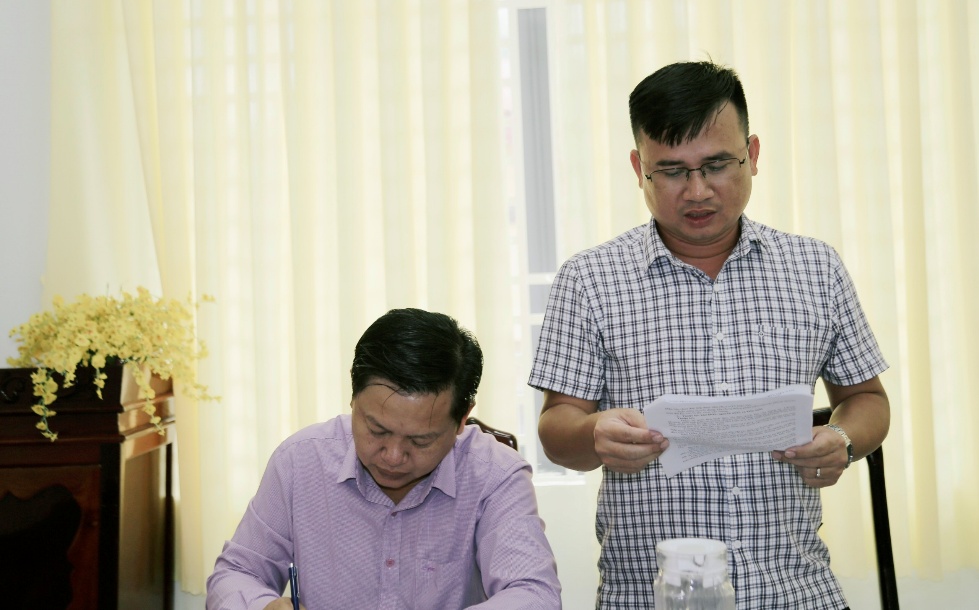 Ông Nguyễn Xuân Phước – Phó Giám đốc Trung tâm phục vụ hành chính công phường Phước Long báo cáo về kết quả vận hành của Trung tâm