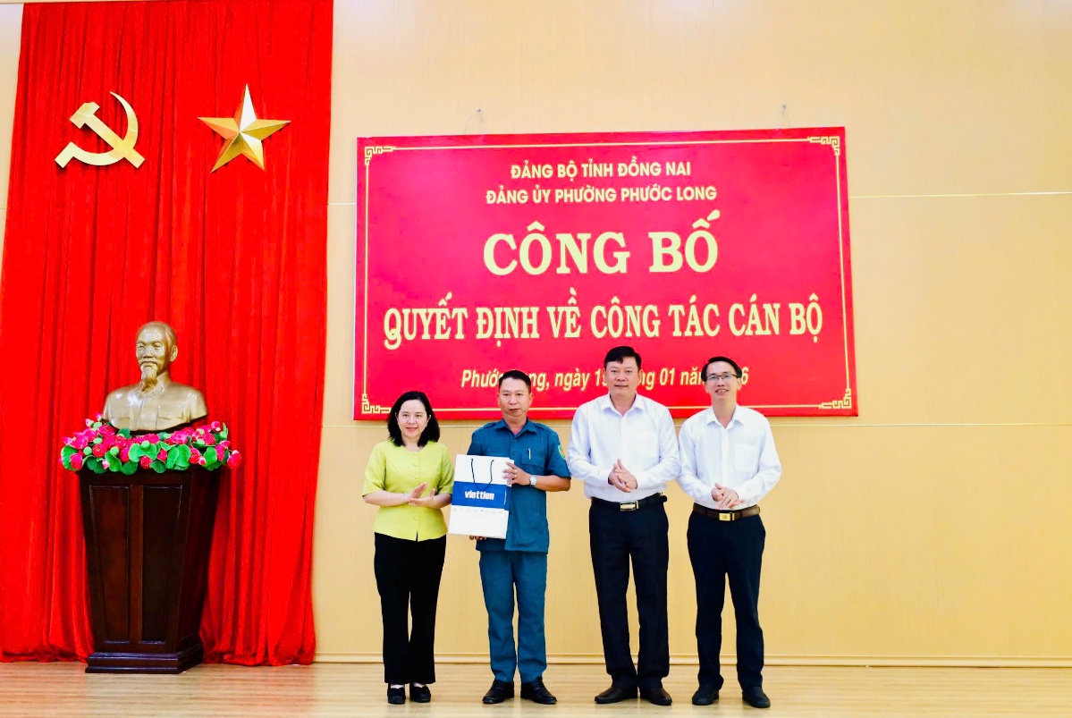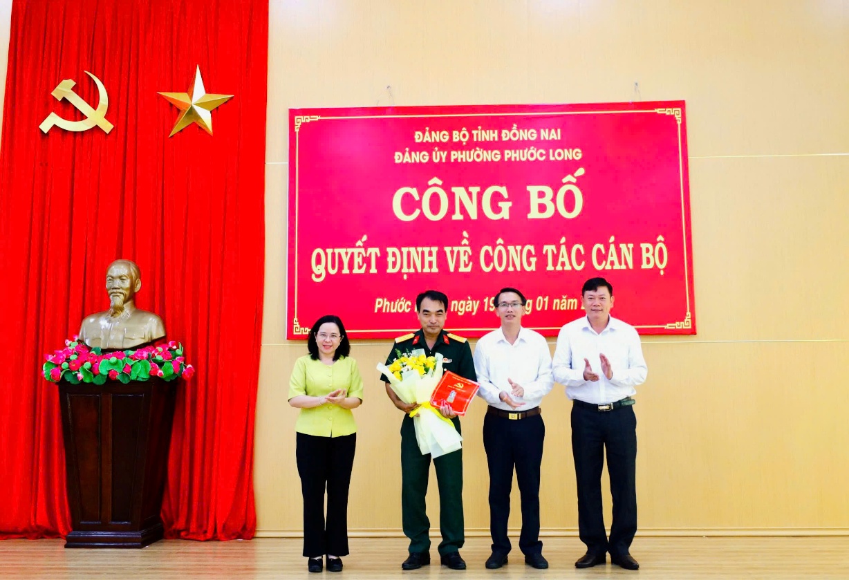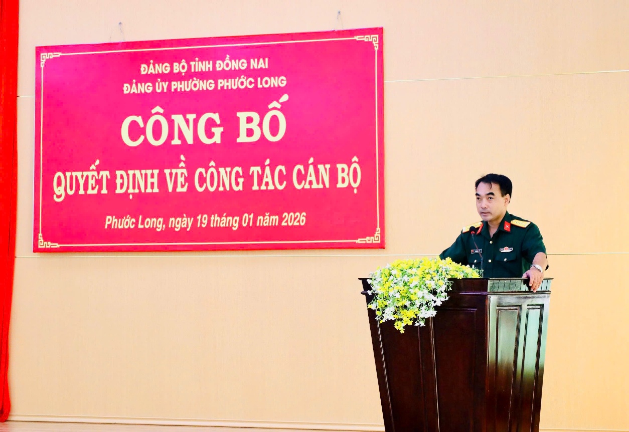 Tại Hội nghị, đồng chí Đoàn Ngọc Lâm – Ủy viên Ban Thường vụ Đảng ủy phường, Trưởng Ban Xây dựng Đảng đã công bố các quyết định quan trọng của Quân khu 7 và Ban Thường vụ Tỉnh ủy liên quan đến công tác cán bộ. Theo đó, đồng chí Thượng tá Lê Thành Trung được bổ nhiệm giữ chức vụ Ủy viên Ban Thường vụ Đảng ủy, Chỉ huy trưởng Ban Chỉ huy Quân sự phường Phước Long.