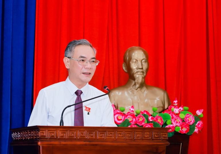 Đồng chí Phạm Thụy Luân – Tỉnh ủy viên, Phó Bí thư Thường trực Đảng ủy UBND tỉnh Đồng Nai, Tổ trưởng Tổ đại biểu số 15 HĐND tỉnh phát biểu tại hội nghị
