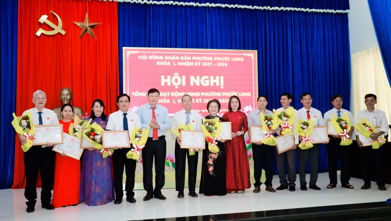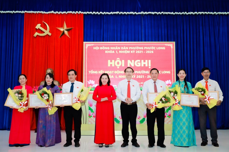 Dịp này, UBND phường Phước Long đã trao giấy khen cho 6 tập thể và 11 cá nhân có thành tích xuất sắc trong hoạt động của HĐND phường khóa I, nhiệm kỳ 2021–2026.