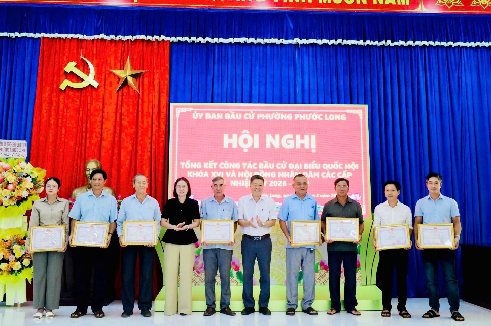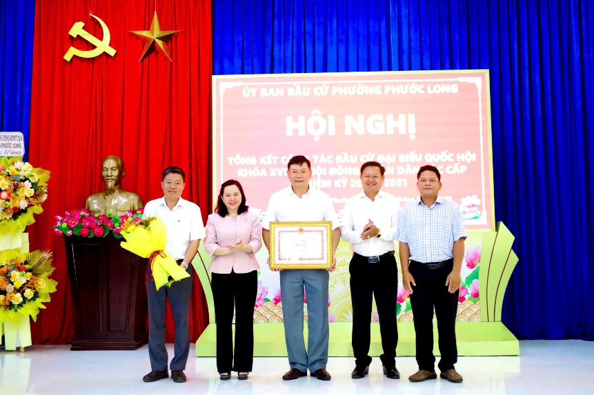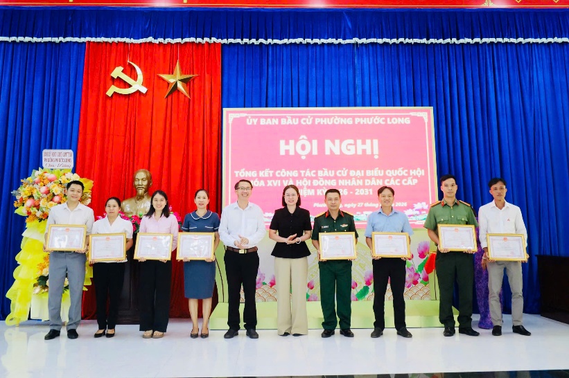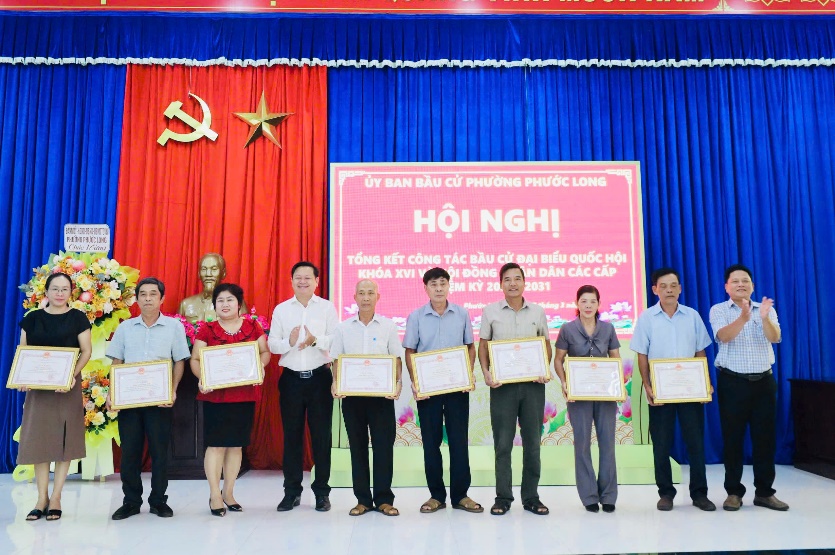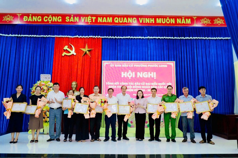 Nhân dịp này, UBND phường Phước Long đã khen thưởng 11 tập thể và 30 cá nhân có thành tích tiêu biểu, xuất sắc trong tổ chức và phục vụ bầu cử.