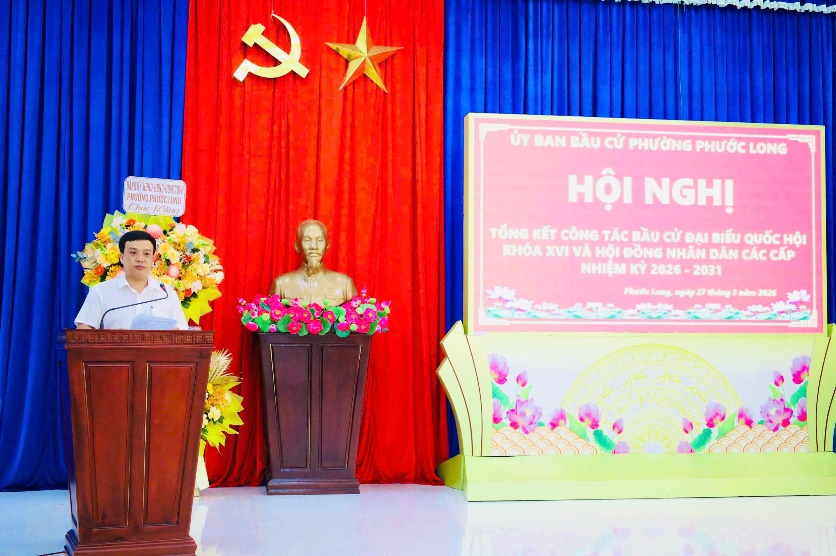 Chiều 27/3/2026, Ủy ban Bầu cử phường Phước Long tổ chức Hội nghị tổng kết công tác bầu cử đại biểu Quốc hội khóa XVI và đại biểu Hội đồng nhân dân (HĐND) các cấp nhiệm kỳ 2026 – 2031.