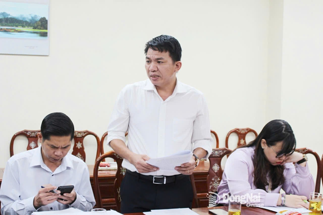 Phó Giám đốc Sở Nội vụ tỉnh Đồng Nai Mai Xuân Tuân trình bày tờ trình, dự thảo nghị quyết tại cuộc họp