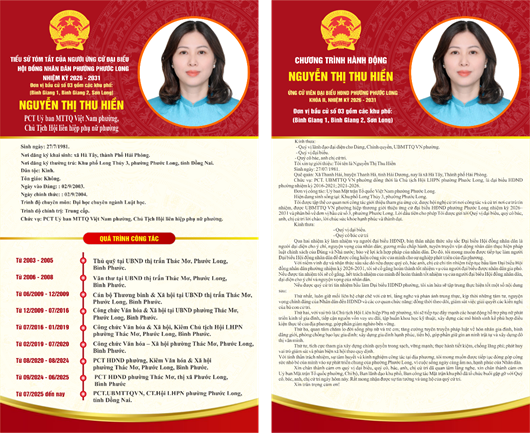 Đơn vị bầu cử số 2: Gồm các khu phố Thác Mơ 1, Thác Mơ 2, Thác Mơ 3, Thác Mơ 4, Thác Mơ 5
