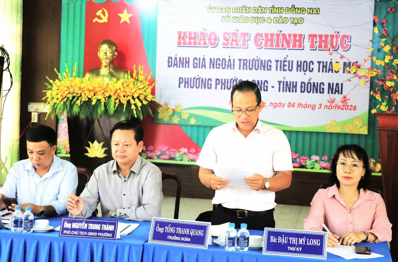 Sáng ngày 4/3/2026, Trường Tiểu học Thác Mơ vinh dự đón Đoàn đánh giá ngoài của Sở Giáo dục và Đào tạo tỉnh Đồng Nai do ông Tống Thanh Quang làm Trưởng đoàn cùng các thành viên đến khảo sát chính thức, phục vụ công tác kiểm định chất lượng giáo dục giai đoạn 2020–2025.