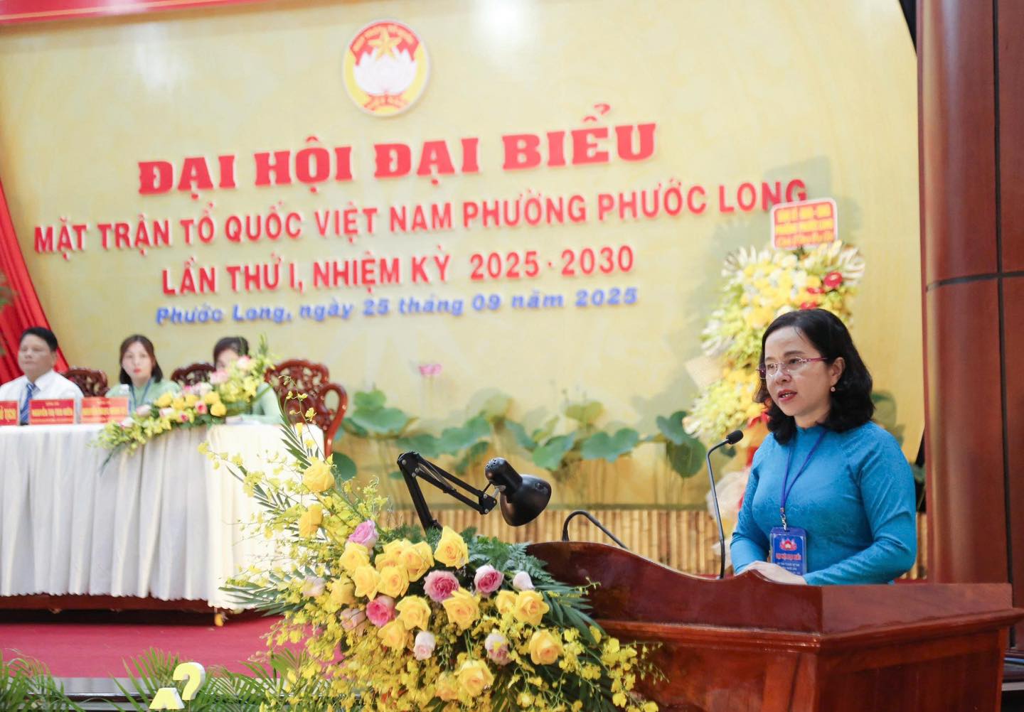 Dự và phát biểu chỉ đạo tại Đại hội, đồng chí Nguyễn Minh Kiên, Ủy viên BCH Trung ương Đoàn, Tỉnh ủy viên, Phó Chủ tịch Ủy ban Mặt trận Tổ quốc Việt Nam tỉnh, Bí thư Tỉnh Đoàn Đồng Nai, đồng chí Nguyễn Thị Hương Giang, Tỉnh ủy viên, Bí thư Đảng ủy phường Phước Long ghi nhận, biểu dương kết quả của Mặt trận nhiệm kỳ qua. Đồng thời đề nghị nhiệm kỳ 2025-2030, Ủy ban Mặt trận Tổ quốc Việt Nam phường thực hiện nghiêm các chỉ đạo của Trung ương, của tỉnh Đồng Nai về hoạt động của Mặt trận theo mô hình mới của chính quyền địa phương 2 cấp, phát huy tinh thần Đoàn kết – Chân lý của mọi thời đại, tiếp tục đổi mới nội dung, phương thức hoạt động của Mặt trận, đẩy mạnh chuyển đổi số trong hoạt động.