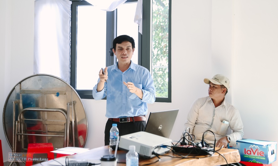 Tiến sĩ Huỳnh Thanh Lộc, Phó giám đốc Trung tâm chuyển giao tiến bộ kỹ thuật truyền đạt kiến thức, hướng dẫn tại buổi tập huấn