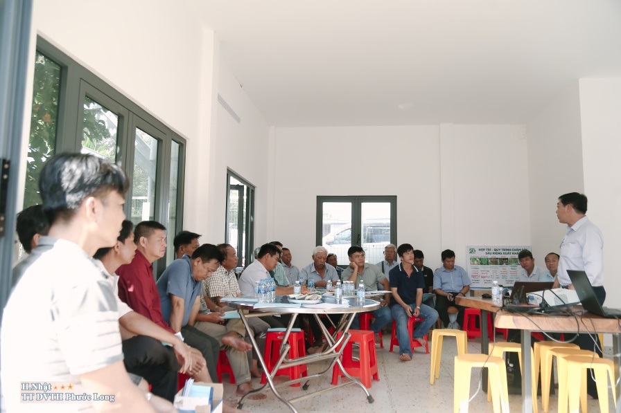 Một số hình ảnh tập huấn kỹ thuật chăm sóc và bảo quản sau thu sạch quả sầu riêng đạt năng suất, chất lượng cao phù hợp nội tiêu và xuất khẩu tại Văn phòng Hợp tác xã cây ăn trái Bàu Nghé
