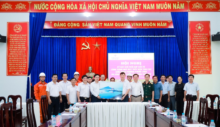 Dịp này, Công ty Cổ phần Thủy điện Thác Mơ đã trao tặng UBND phường Phước Long bức tranh “Bình minh trên Nhà máy Thủy điện Thác Mơ”.<br />