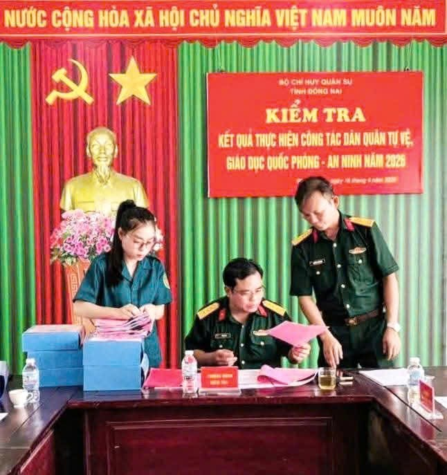 <div style="text-align: justify;">Ngày 16-4-2026, đoàn kiểm tra của Bộ CHQS tỉnh Đồng Nai do Thượng tá Đỗ Duy Phú – Phó Chủ nhiệm Chính trị Bộ CHQS tỉnh làm Trưởng đoàn đã tiến hành kiểm tra kết quả thực hiện công tác dân quân tự vệ, giáo dục quốc phòng – an ninh năm 2026 tại Ban CHQS phường Phước Long.<br />