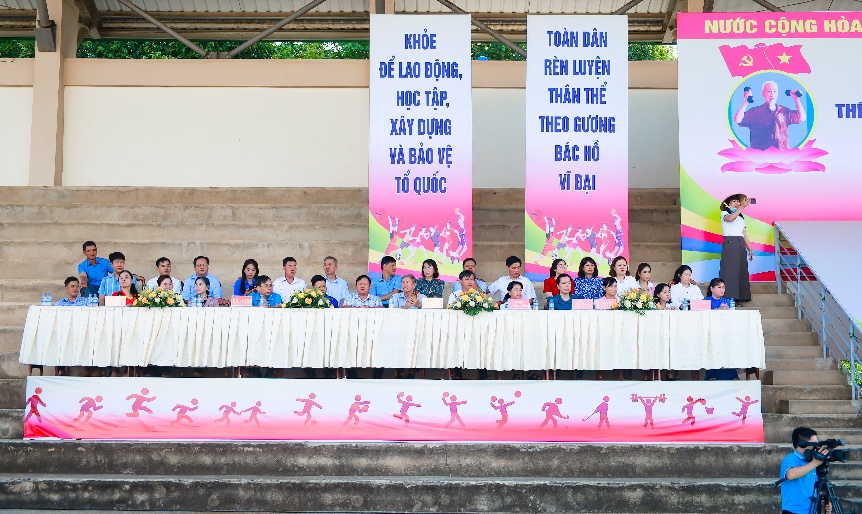 Mở đầu buổi lễ là phần diễu hành biểu dương lực lượng của vận động viên đến từ các khối: Kiệu ảnh Bác, cờ Tổ quốc, lực lượng vũ trang, cán bộ công chức, ngành Giáo dục và nhân dân các khu phố. Ngay sau nghi thức rước đuốc truyền thống là các tiết mục đồng diễn nghệ thuật, võ thuật đầy màu sắc, thể hiện khí thế sôi nổi của ngày hội thể thao.<br />