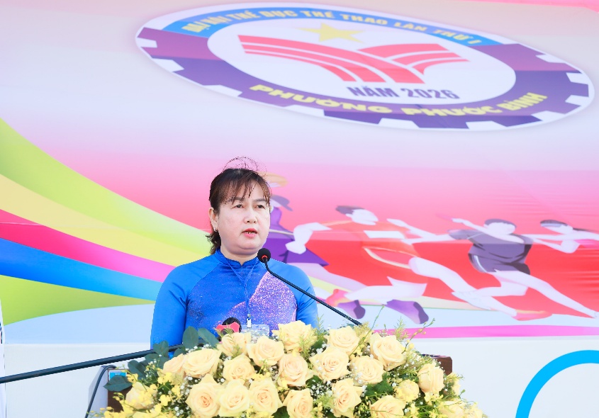 Phát biểu khai mạc, bà Bùi Thị Hằng – UV.BTV Đảng ủy, Phó Chủ tịch UBND, Trưởng Ban Chỉ đạo Đại hội TDTT phường Phước Bình khẳng định: Đại hội là dịp để nâng cao chất lượng phong trào thể thao quần chúng, phát hiện những nhân tố tiêu biểu cho địa phương, đồng thời kêu gọi toàn thể cán bộ, nhân dân tiếp tục hưởng ứng mạnh mẽ phong trào rèn luyện thân thể theo gương Bác Hồ vĩ đại.<br />