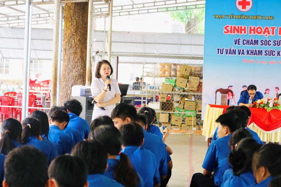 <div style="text-align: justify;">Nhằm nâng cao nhận thức và trang bị kiến thức cần thiết cho đoàn viên, thanh niên và học sinh, chiều ngày 20/3, Trạm Y tế phường Phước Long đã phối hợp với Trường THPT Phước Long tổ chức buổi sinh hoạt ngoại khóa với chủ đề “Chăm sóc sức khỏe sinh sản và tư vấn, khám sức khỏe trước hôn nhân”.<br />